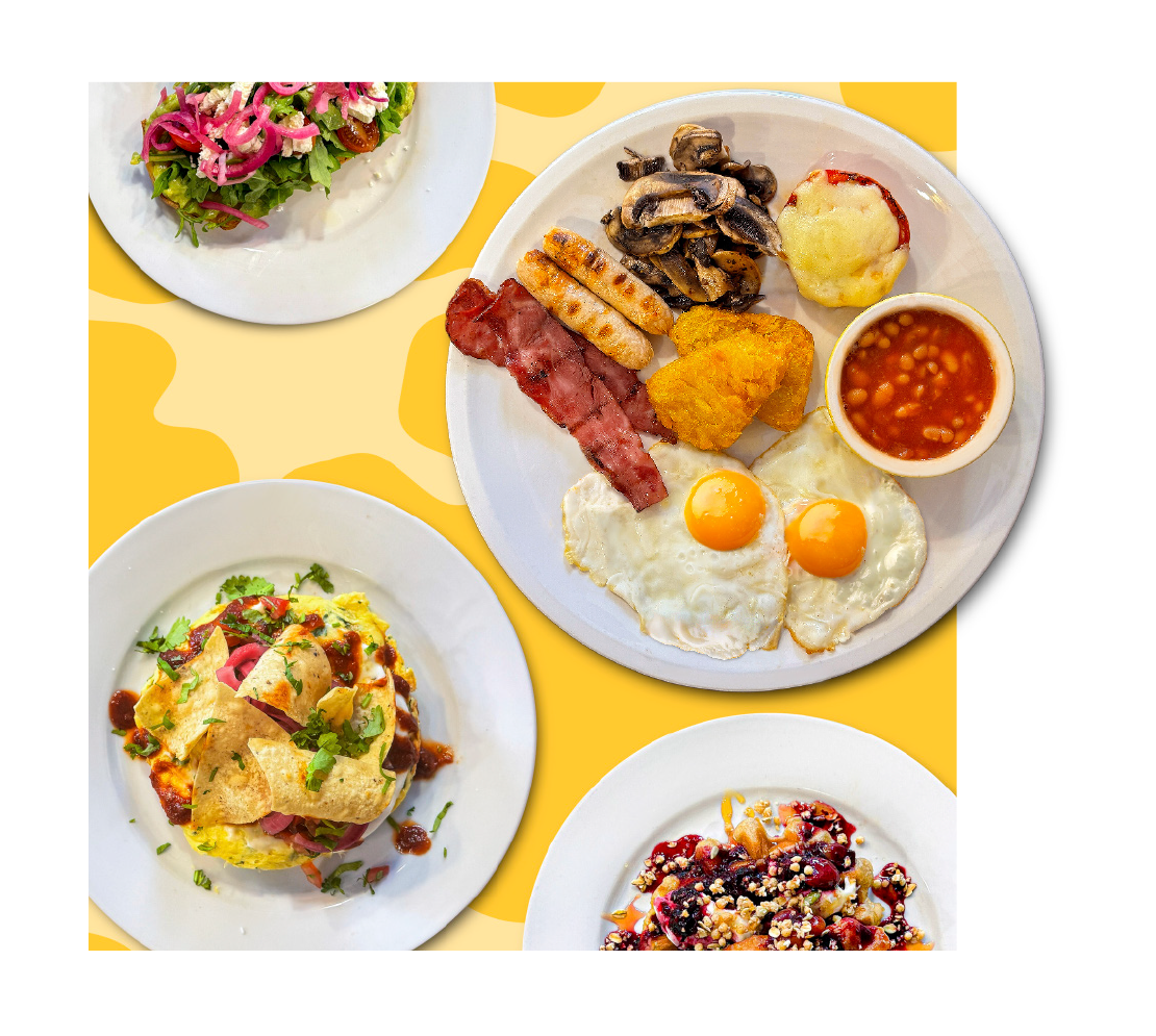 An egg-citing variety of creative morning options, including full breakfasts, hearty burritos,