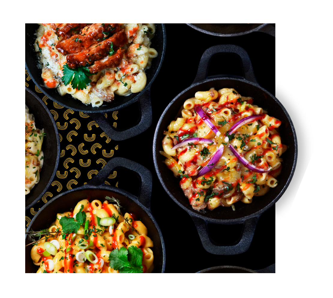 Pimped up macaroni pasta, served with lashings of our signature fondue sauce & the tastiest unique toppings.